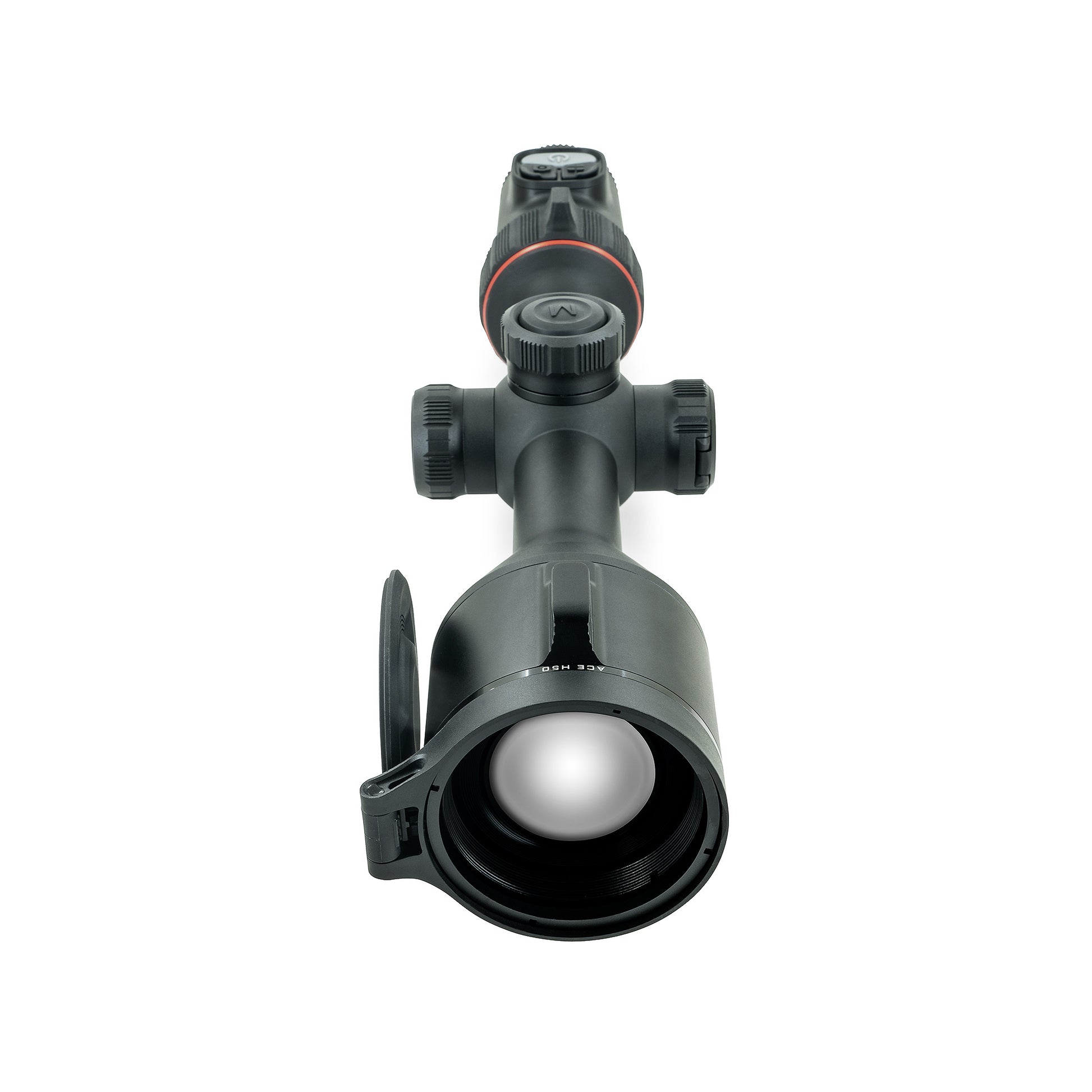 The ACE is built around the idea of combining leading user-requested features in a streamlined optic that balances advanced capability with ease-of-use in the field. Designed to feel like a traditional day optic, the ACE is compatible with bolt action or semi-automatic rifles using standard 30 mm mounts and rings. The combination of an internal USB-C charging battery and a removable 18650 style rechargeable battery allows users to hot-swap batteries in the field to run indefinitely. A 1-3x ocular magnifier provides optical magnification of the 2560×2560 round AMOLED display inside the eyepiece. The Vision+ system pairs this high-resolution display with a 15 mK NETD sensor for an incredibly detailed and precise image.